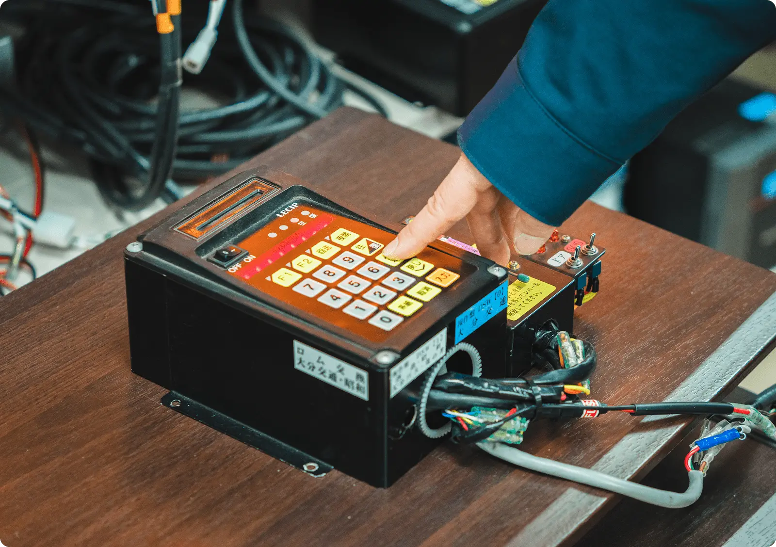 車両に合わせた機器取り付けと、表示データ設定を行います。