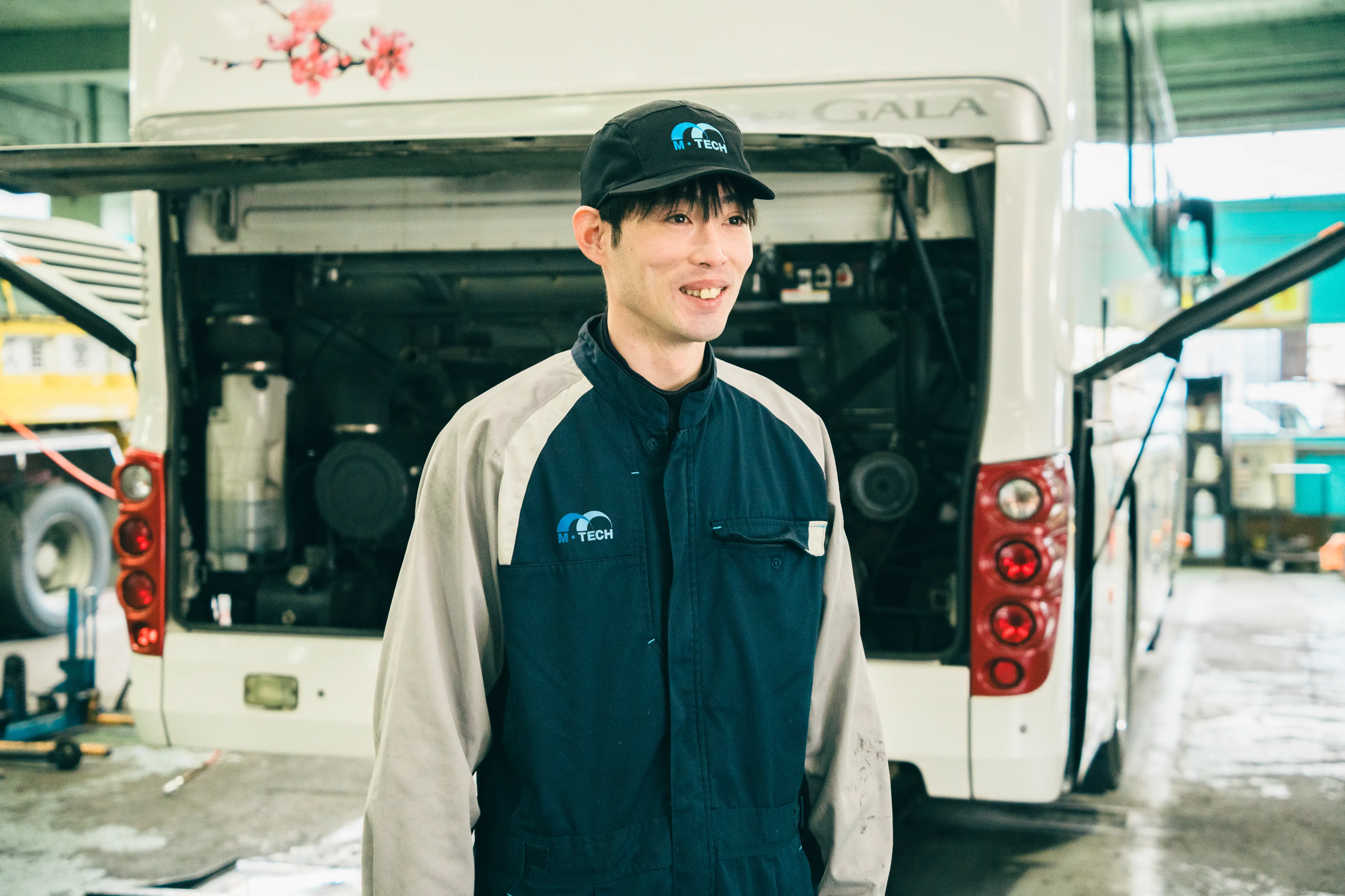 「昨日できなかったことが、今日自分の力でできるようになった」。日々の業務の中で、その小さな成長の積み重ねを実感できる瞬間が本当に楽しいです。最初は先輩の後ろ姿を見ているだけだった作業も、今では一人で任せてもらえるようになり、自分自身の技術が少しずつ磨かれていく喜びがあります。そして何より、自分が心を込めて整備したバスが、今日も街中で誰かの大切な日常を運んでいるという事実に、言葉にできない強い誇りを感じています。