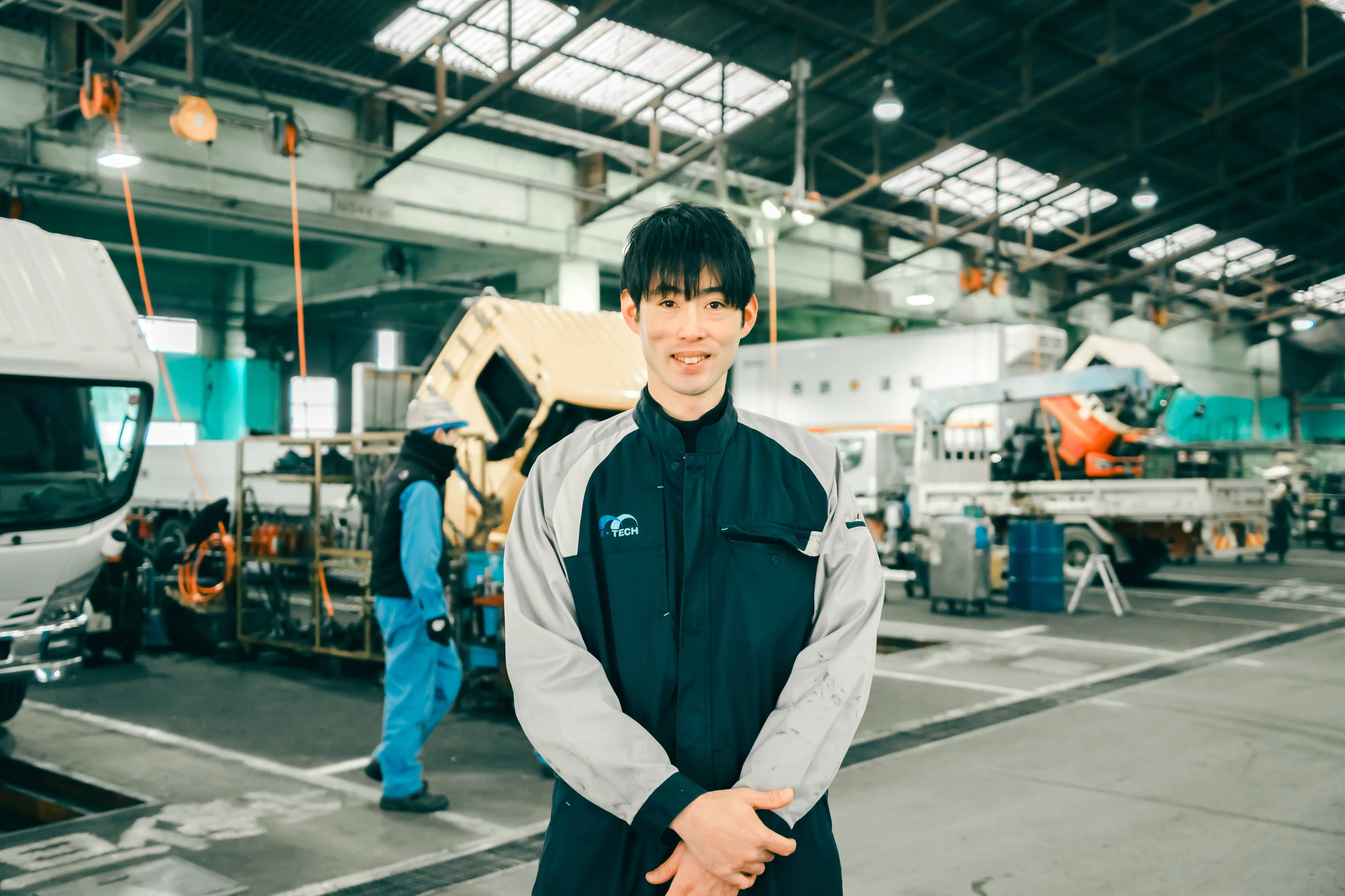 2019年新卒入社。 北九州工場にて、車検や定期点検、臨時修理などの業務を担当。アットホームな職場で先輩からのサポートを受けながら、自動車技術の進化に向き合っています。