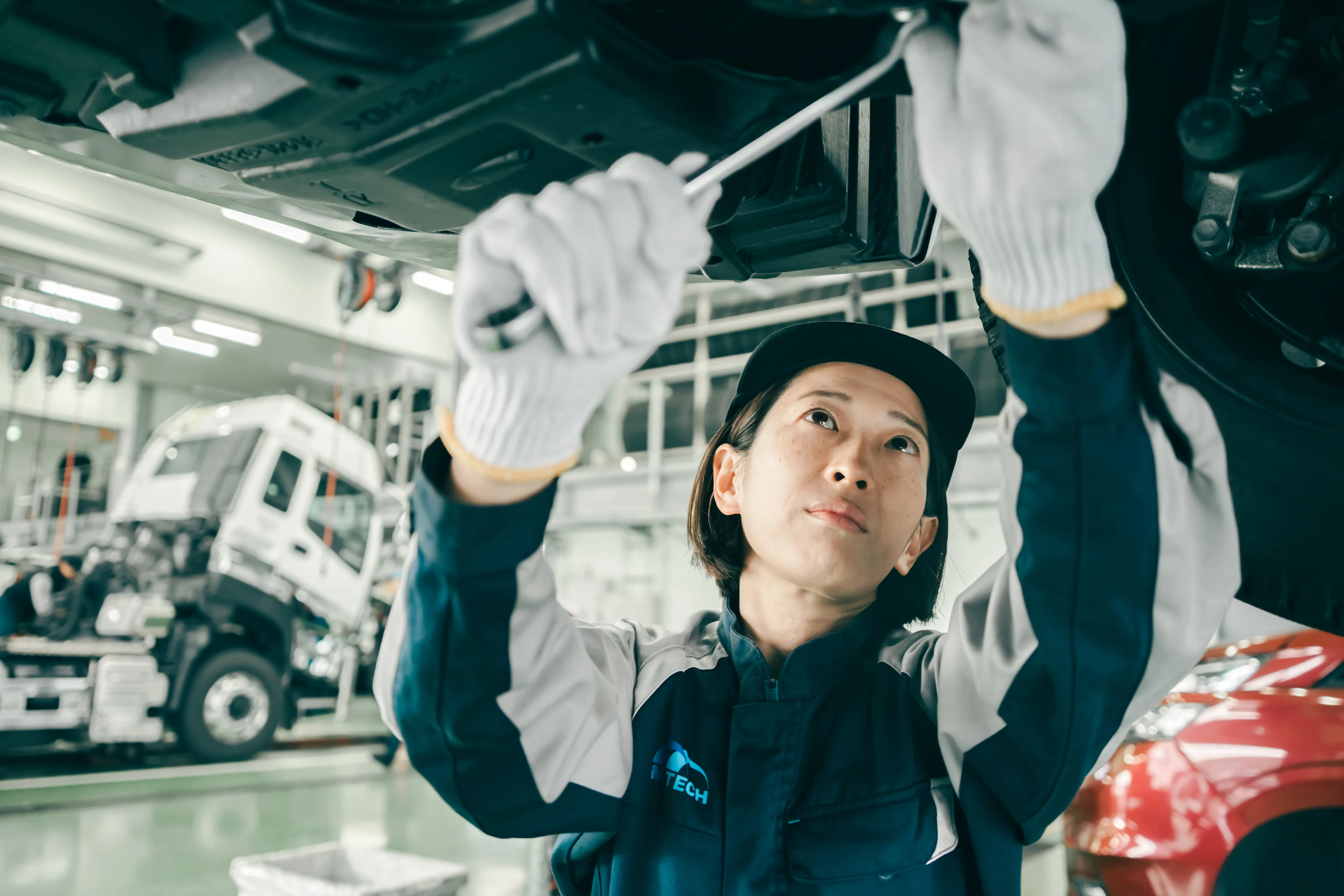 乗用車の整備を担当していますが、特定の車種に限らず様々なメーカーの車両が入庫するので日々やりがいを感じています。 故障の原因を特定し、問題を解決できたときは喜びを感じます。 車検や修理でご入庫されたお客様には問診から受け渡しまで、できる限り対応しています。 直接感謝の言葉を受け取れる機会が多くやりがいにつながっています。