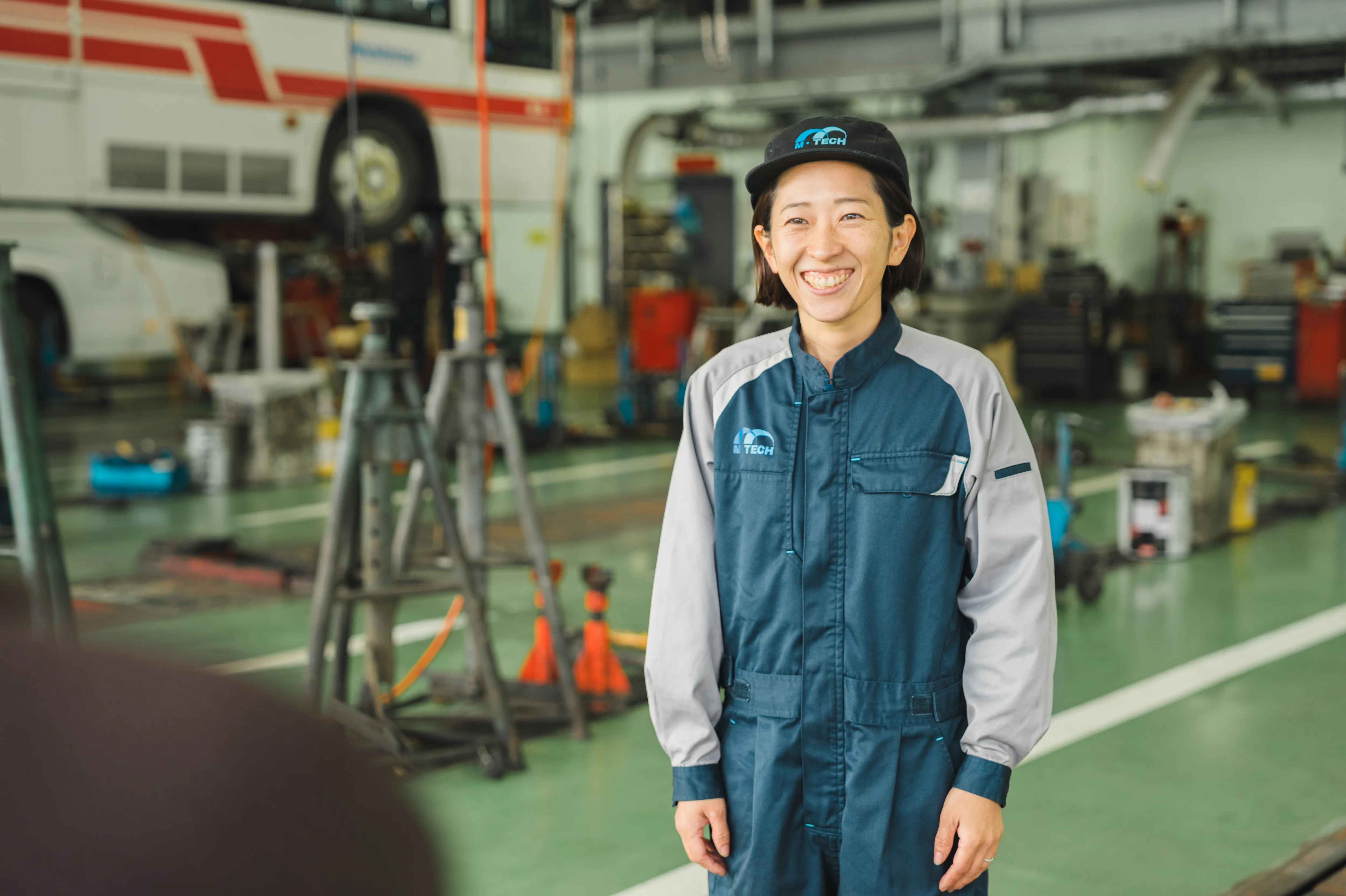 西鉄バスに加えて、乗用車、大型トラックなどの整備を行っており、様々な車種に対応できる整備士スキルを身につけることが できることが魅力だと思います。 また私の働く職場では先輩方もやさしくアットホームな環境です。 育児の為、時短勤務で働かせていただいてますが、先輩方にフォローしてもらいながら無理なく勤務ができています。