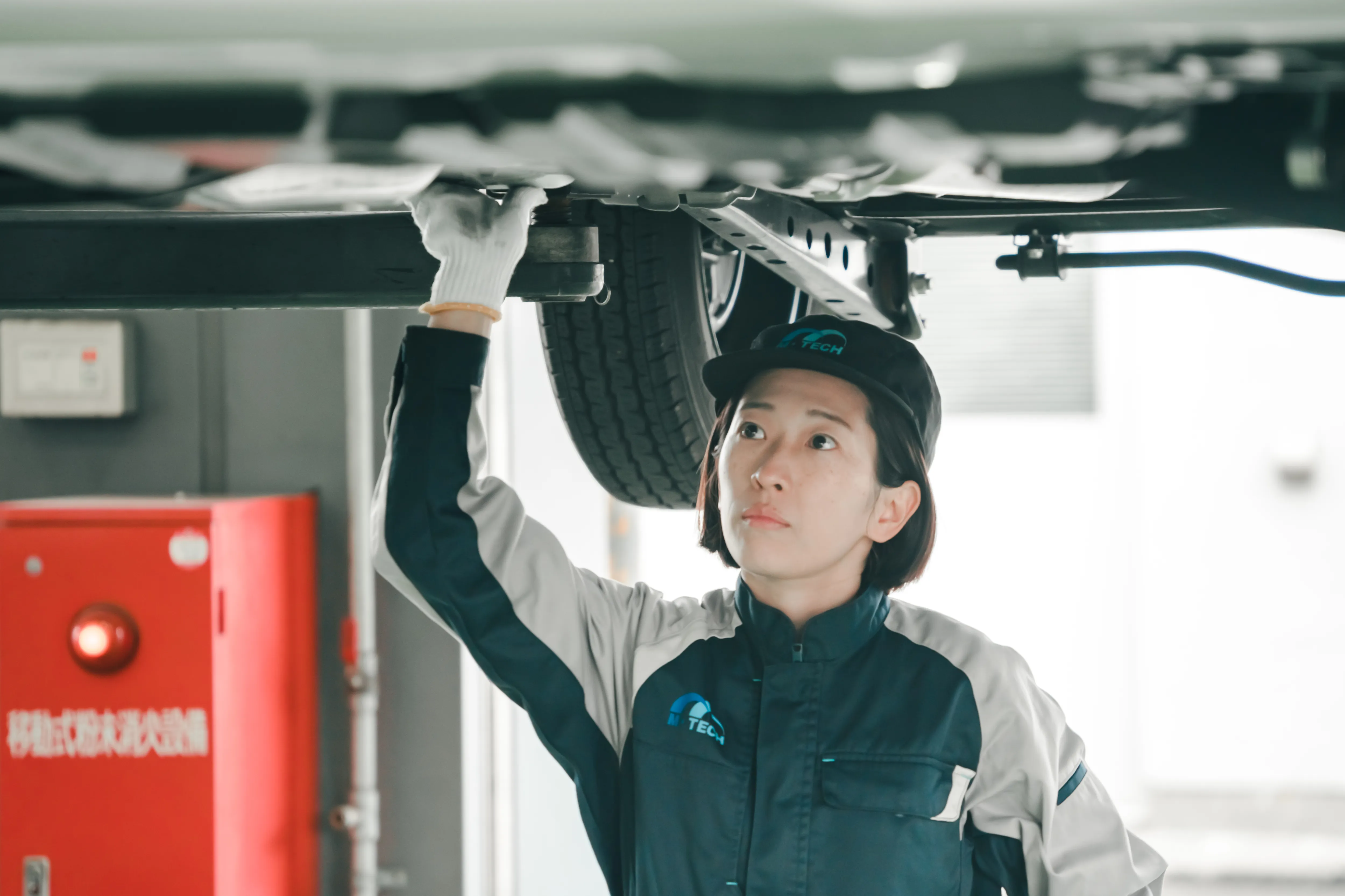 2009年、西鉄エム・テックに新卒で入社。現在は那の津工場で、乗用車の車検・修理からお見積りの作成、お客様へのご連絡まで幅広く行っています。