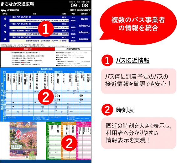 スマートバス停、十和田市内に本日オープンする新たな交通ターミナルに導入 ~複数バス事業者の情報をまとめて表示!交通ターミナルの利便性を向上~