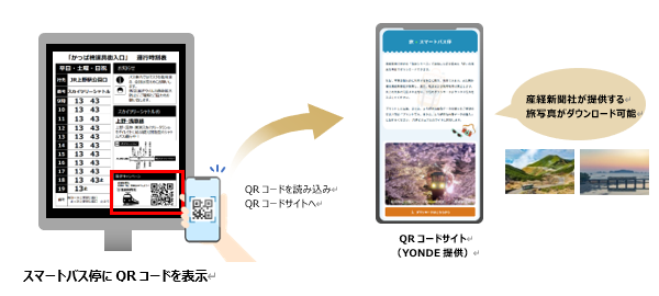 ●設置するスマートバス停にQRコードを表示し、QRコードサイトから、産経新聞社の「探訪シリーズ」で過去に人気を集めた旅の写真がダウンロード可能です。